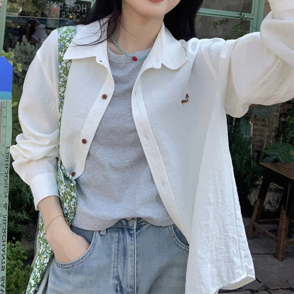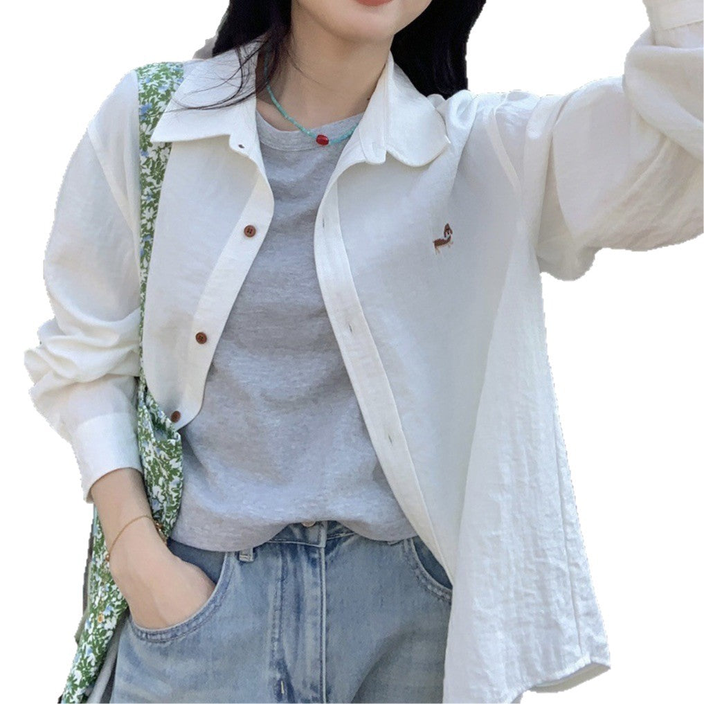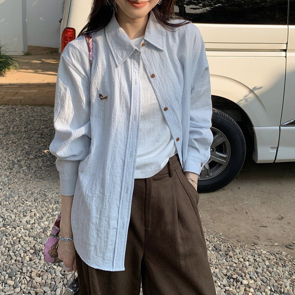 Embroidery Design Languid Shirt Spring And Autumn Fashion Casual Long Sleeves New Casual Temperament Shirt Loose Coat HZ1208