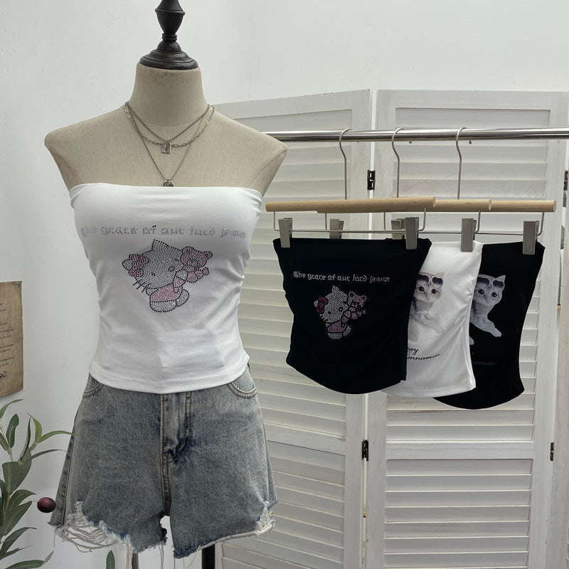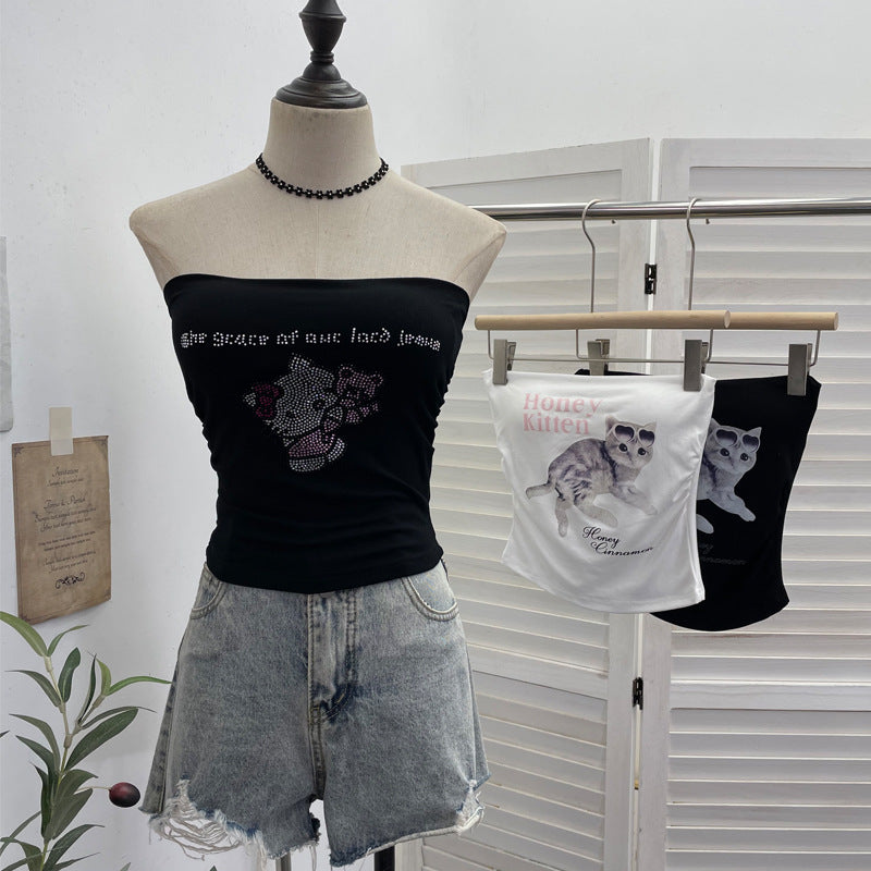Hot Diamond Tector Tset Coat Outside Wearing Bra Mat Babes Wrapped Bra Short Open Umbilly Printed Vest 8031 HZ1208