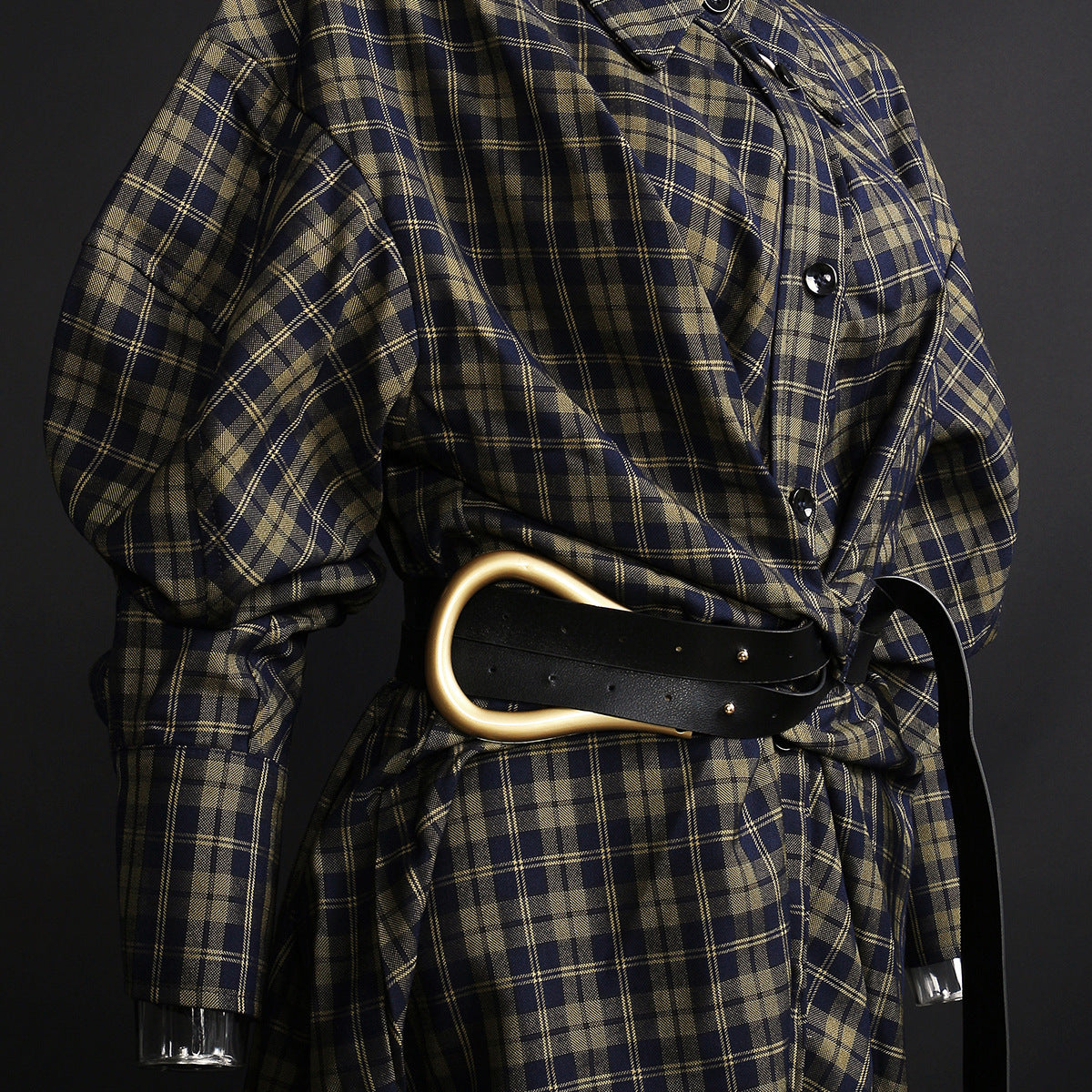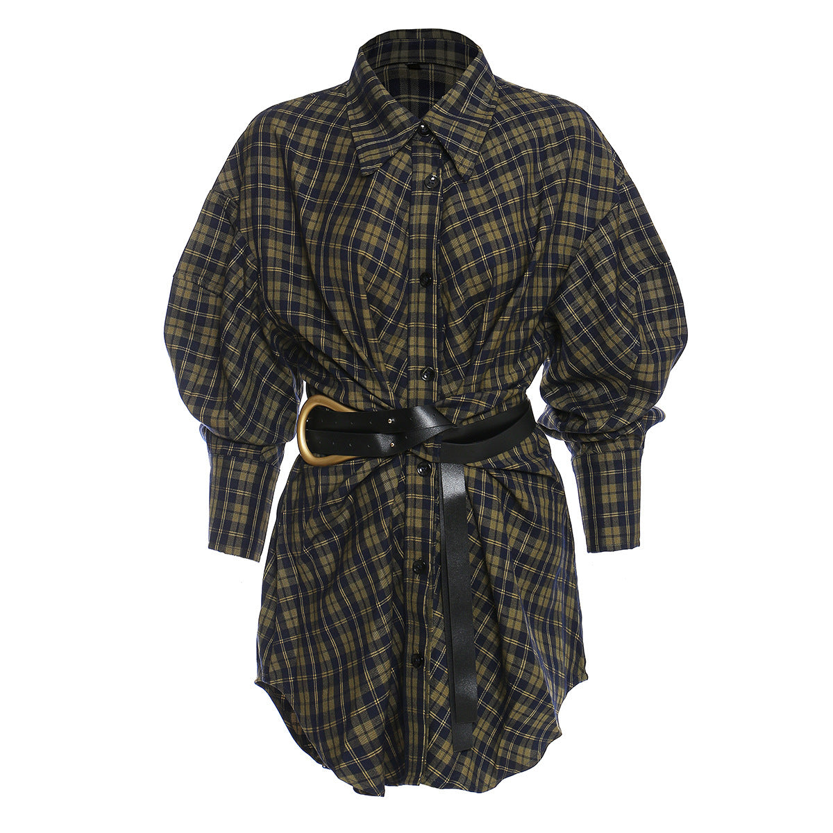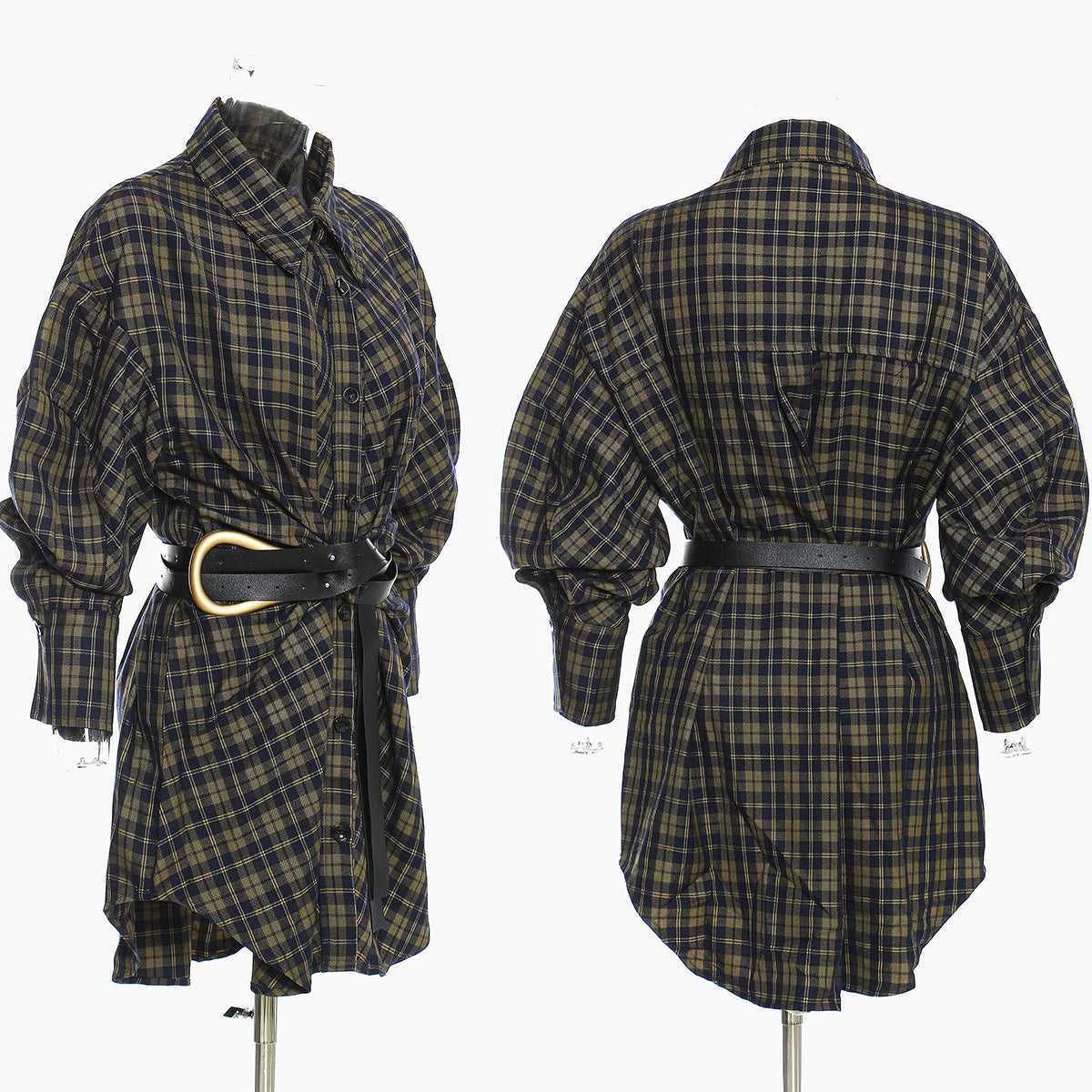 25 New Plaid Shirt Women's New Loose Korean Version Of The Retro Belt With Long Shirt Skirt 1404 HZ1208