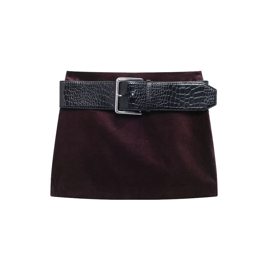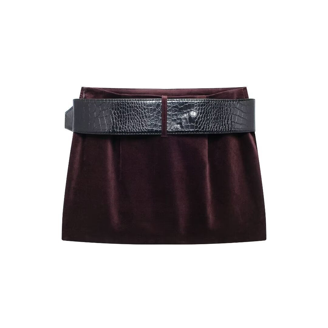 Autumn New Velvet Short Jacket With Belt Miniskirt HZ1208