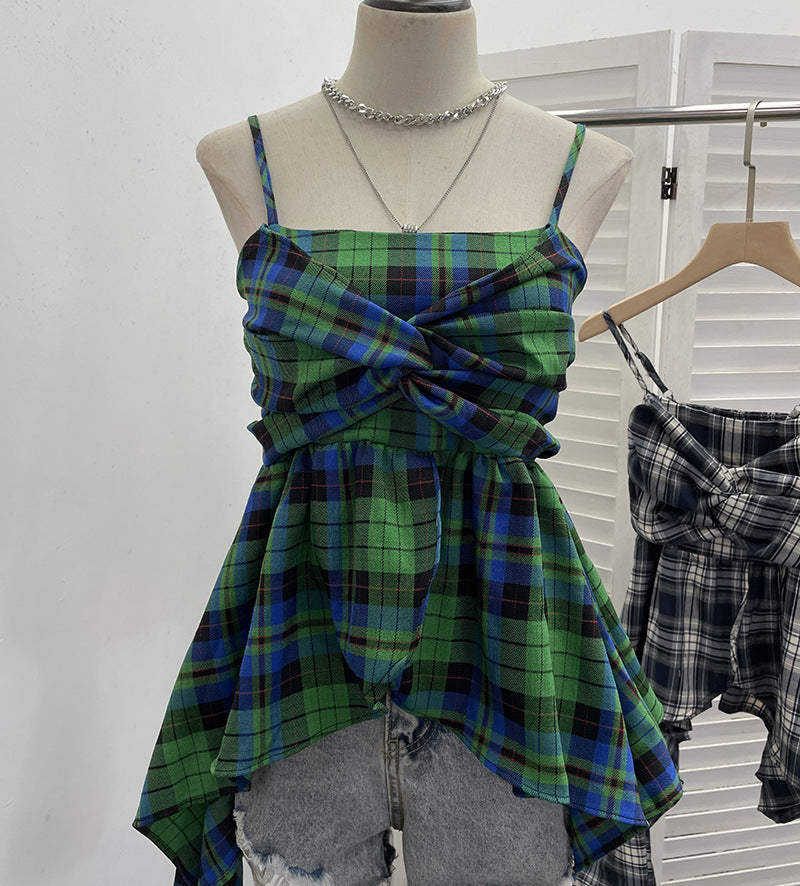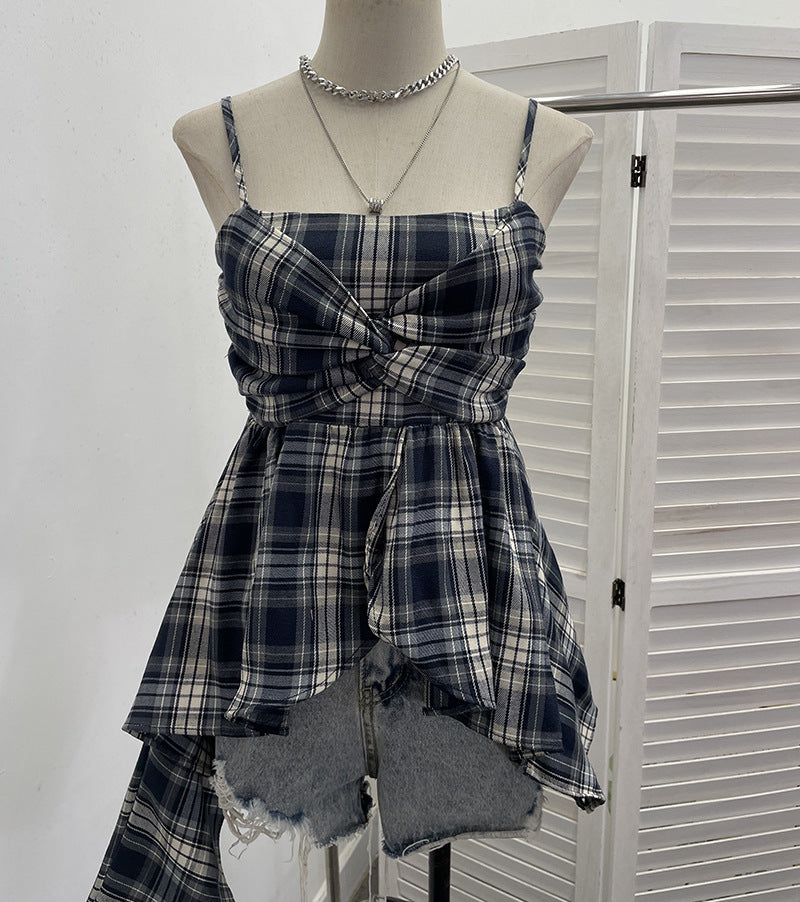 Real Shooting Irregular Skirt Lattice Sling Vest Women's Summer Design Sleeveless Top 9151 HZ1208