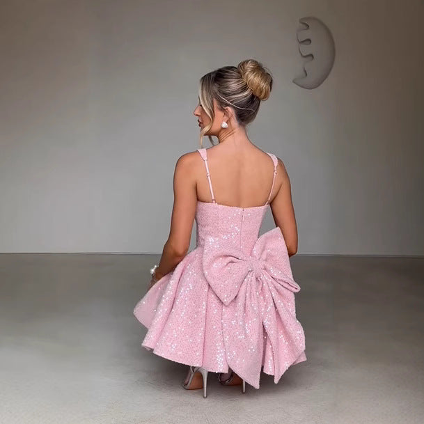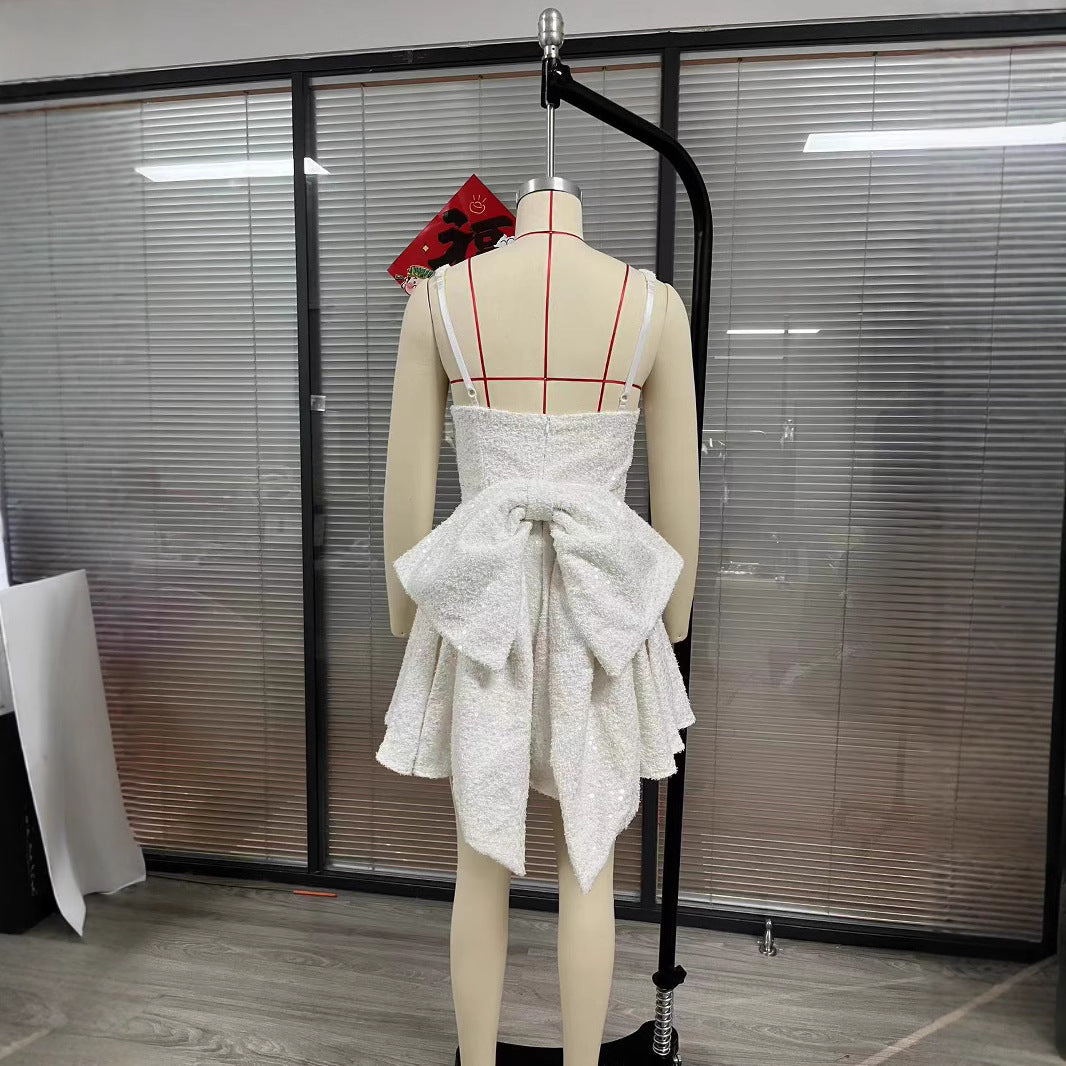 Sexy Women's New Sexy U-Neck Bow Bright A-Skirt HZ1208