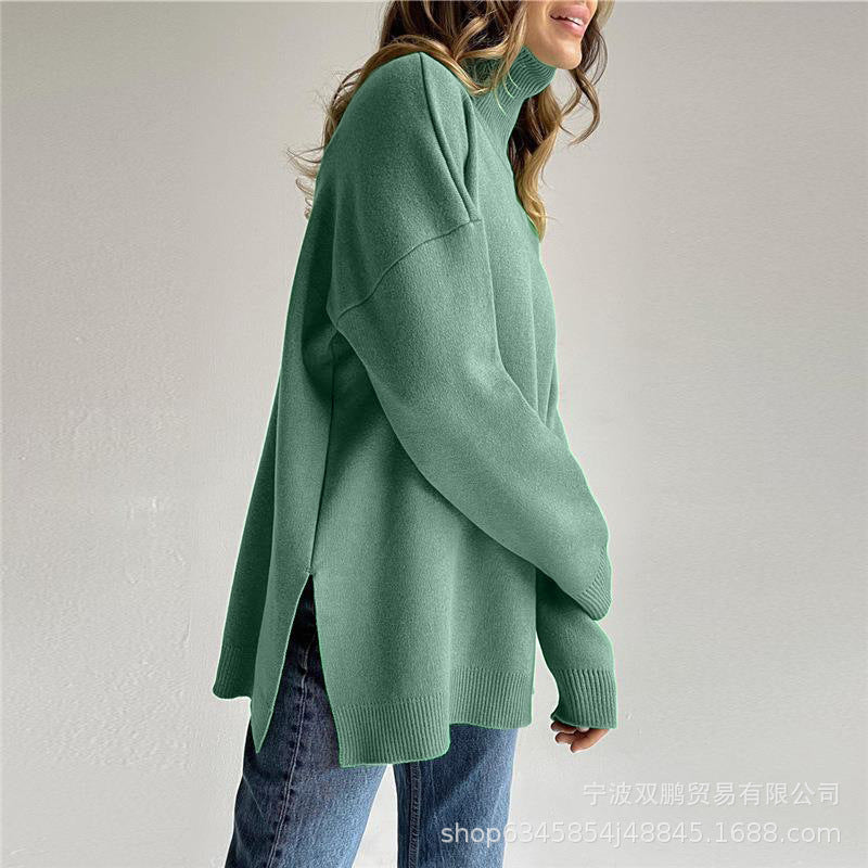 New High-Necked Sweater For Autumn/Winter 2025 Women Selling Open-Fork Knitted Shirt Design Soft Tops Ins HZ1208