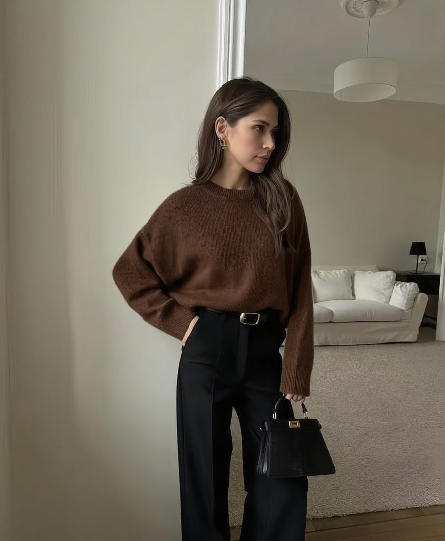 2025 Autumn And Winter Hot Sale Thick Short Round Neck Solid Color Sweater Bum Basic Women's Clothing HZ1208