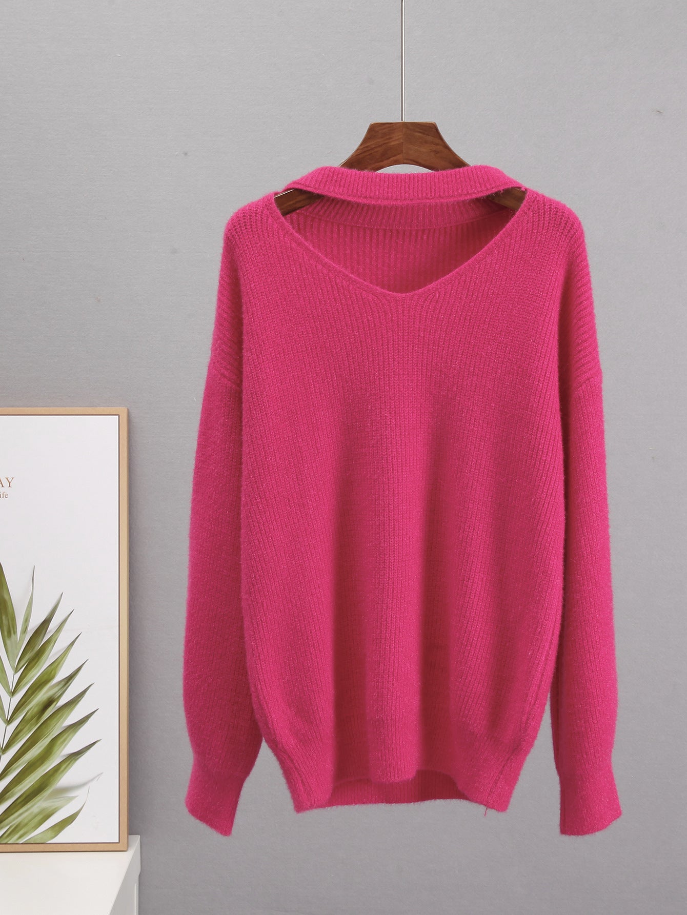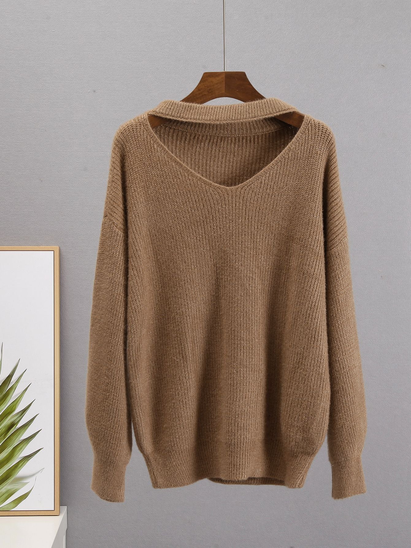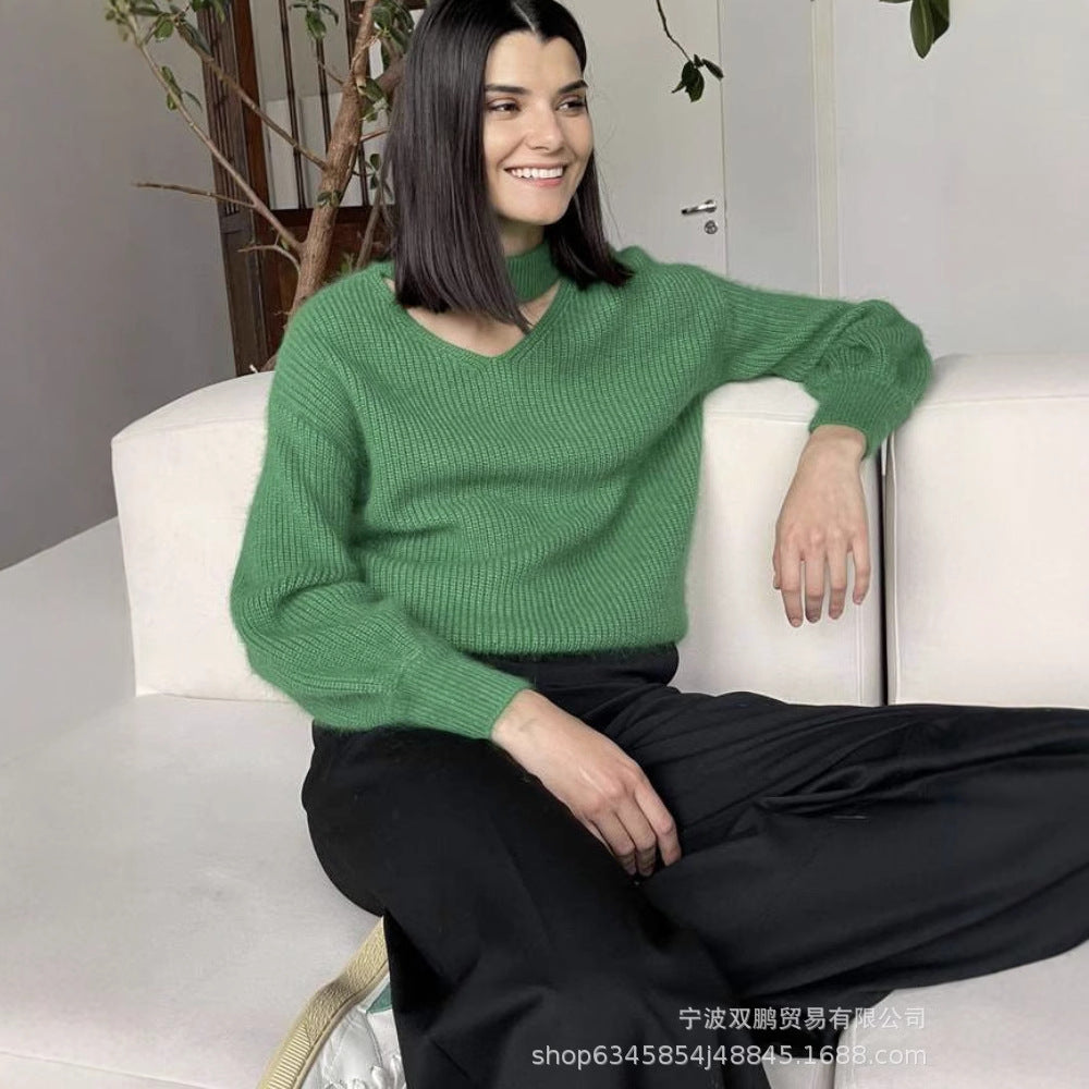 2025 Autumn And Winter Ultra-Soft V-Neck Imitation Marinish Sweater Female Lazy Style Loose Knitted Sweater HZ1208
