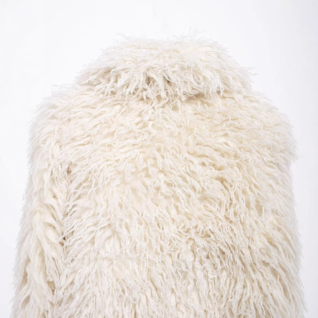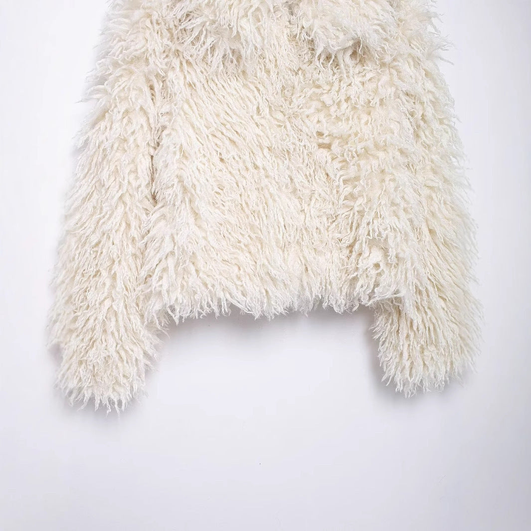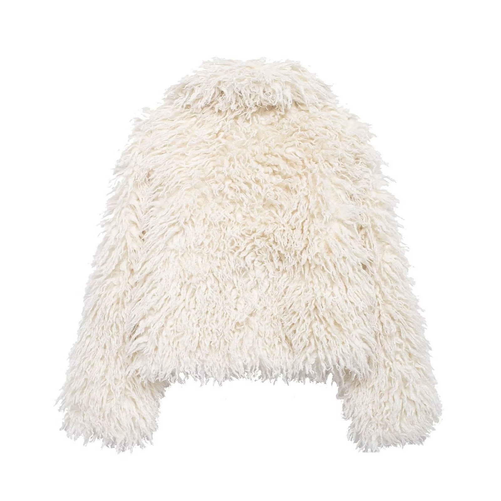 2025 Winter New Temperament Simple Collar Long-Sleeved Artificial Fur Warm Coat Woman HZ1208