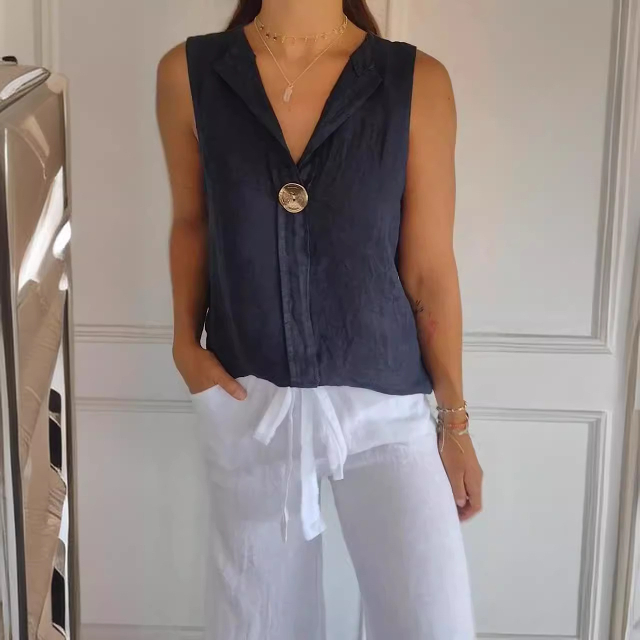2025 Women's Fake Cardigan V-Neck Cotton Sleeveless Casual Shirt Cotton And Shemp Breathable HZ1208