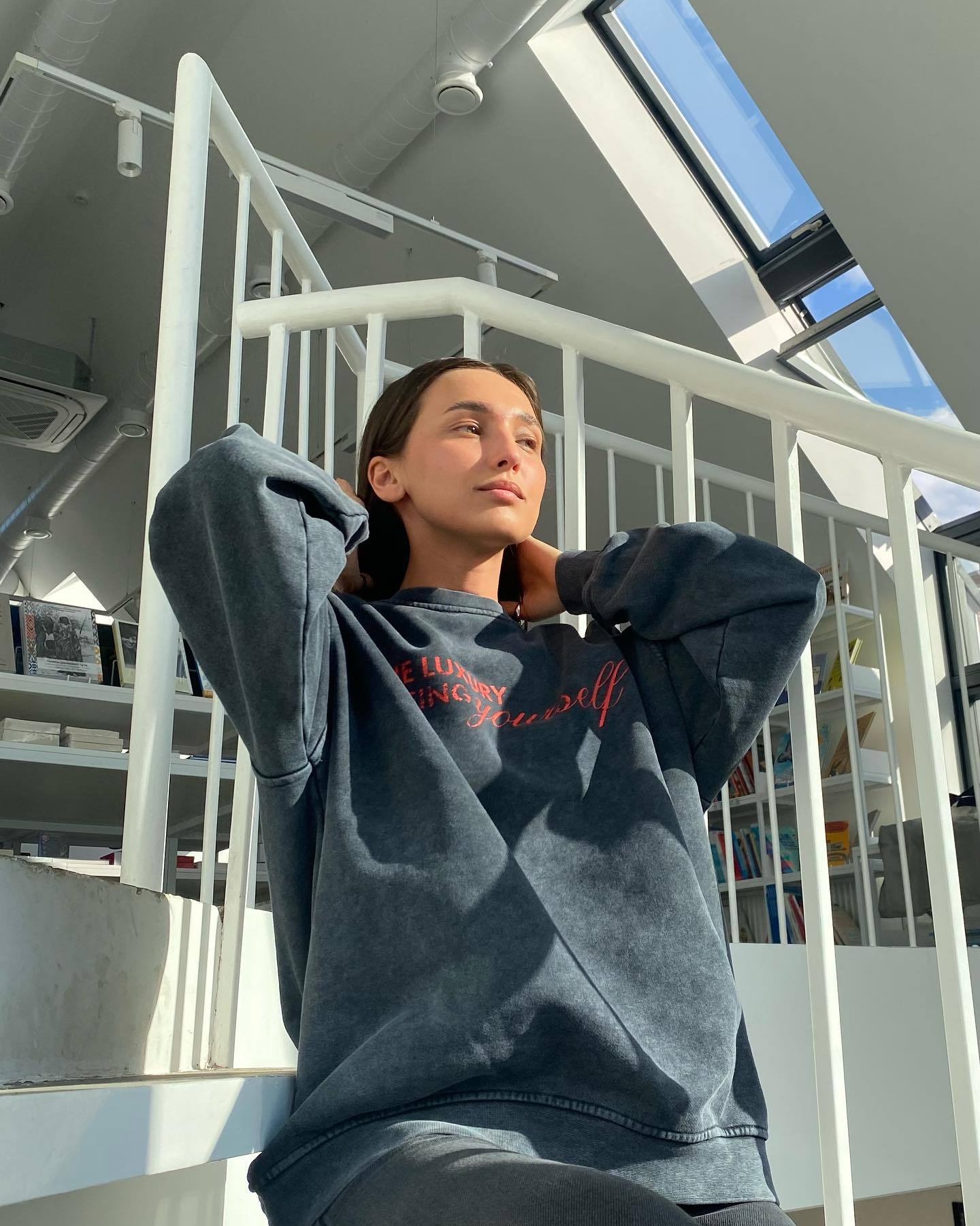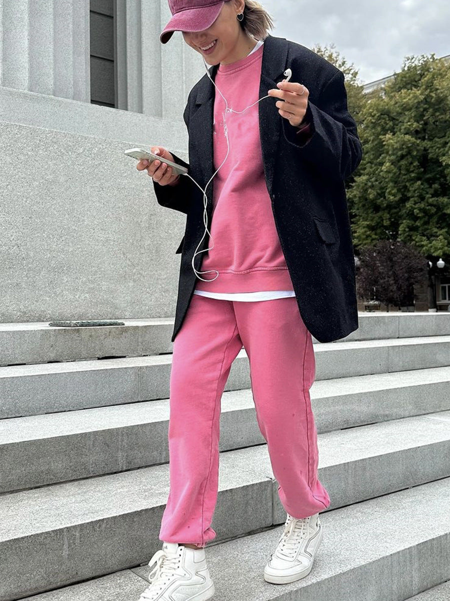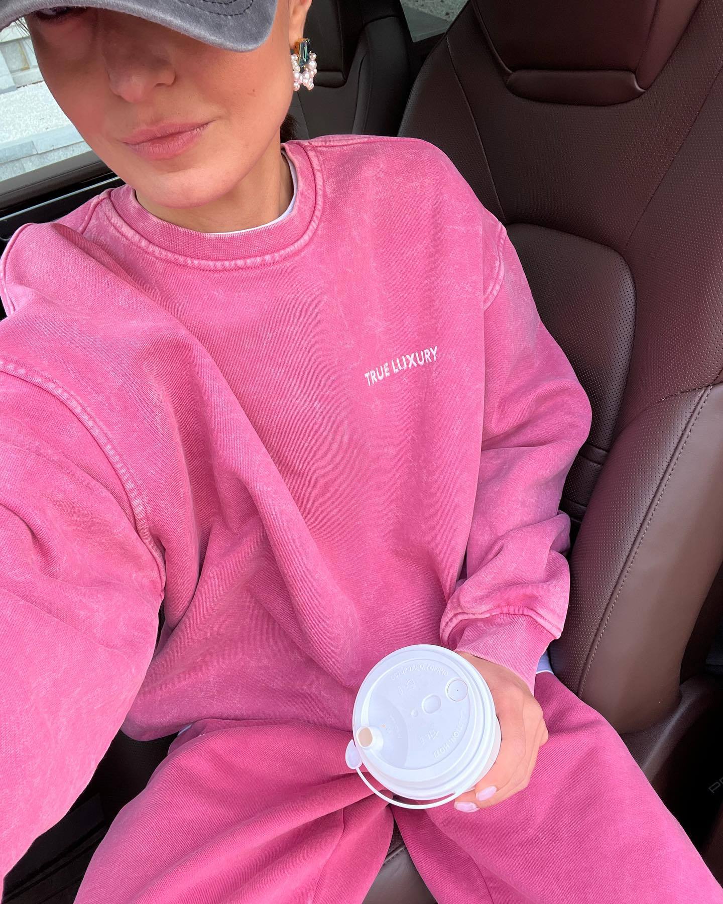 25 Autumn And Winter New Cotton Printing To Make Old Top + Pants Simple Letter Velvet Loose Knitting Set HZ1208