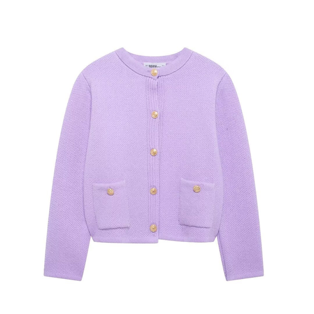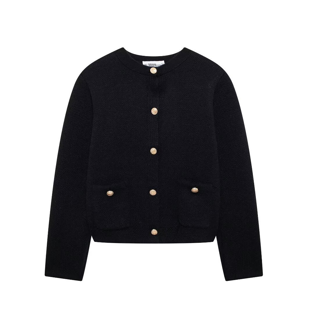 Autumn New Gold Buckle Trim Knitted Coat 6427144 HZ1208