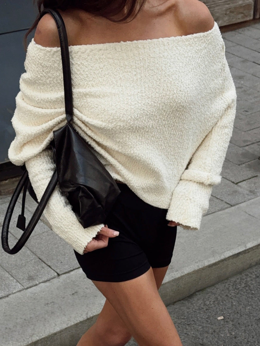 Fashion Sense Elastic Towel Cloth Shoulder Double Sweater Cover Autumn And Winter Loose Leisure Lazy Wind HZ1208