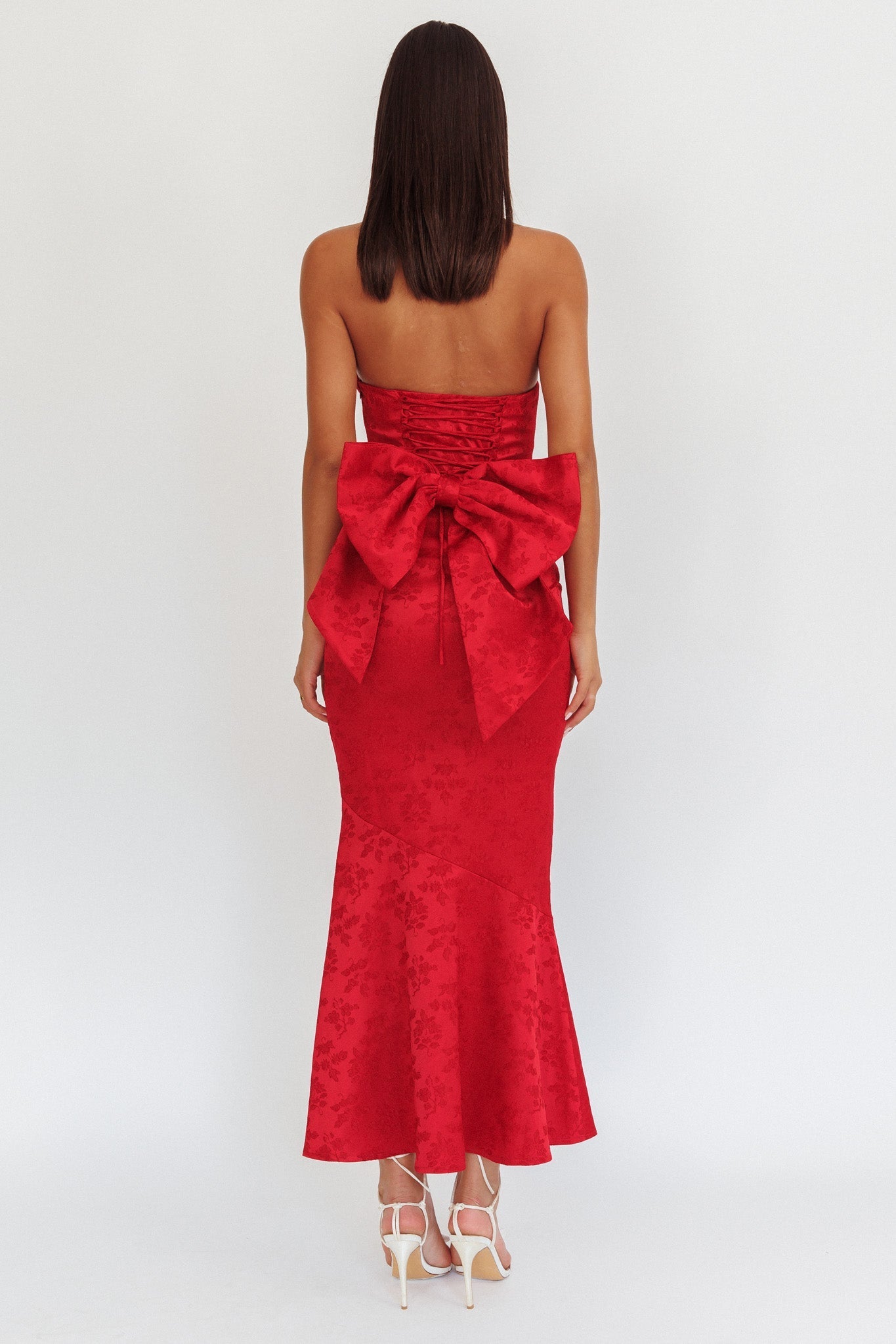 You'll feel like a princess in our Melty Kisses maxi dress. We are head over heels for its oversized bow and lace-up back. Perfect for a glam event or wedding, this dress is bound to leave a lasting impression. Team it with nude heels and a clutch for a gorgeous look.