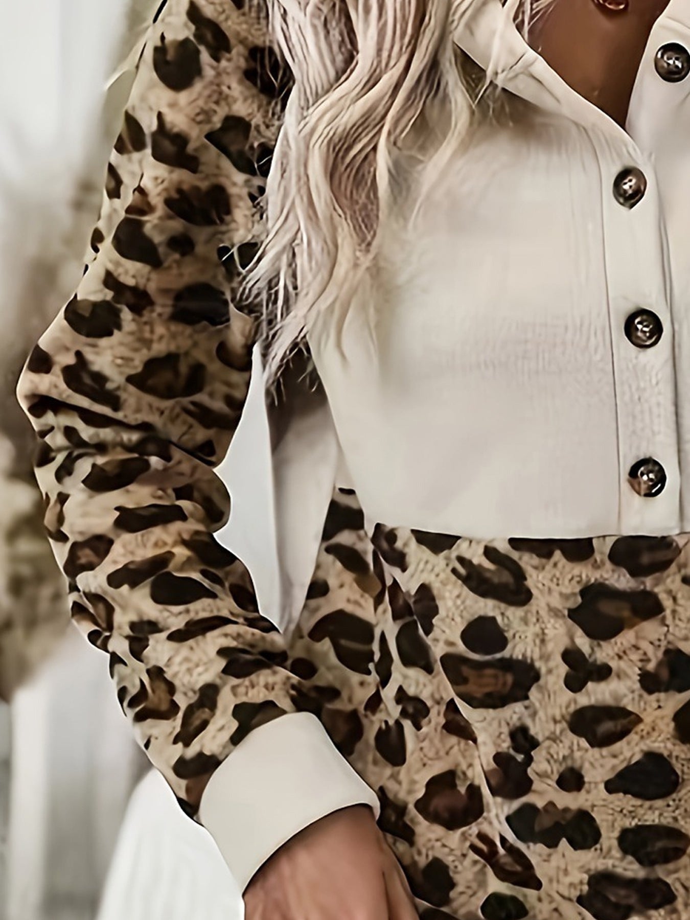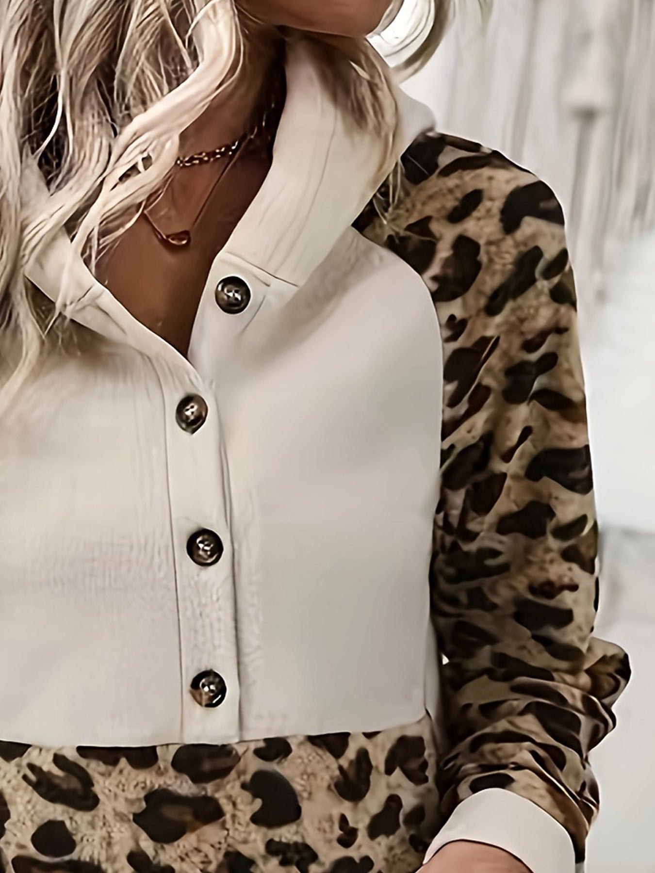 New Leopard-Print Sleeve Spliced Cap Long-Sleeved Eds Coat HZ1208