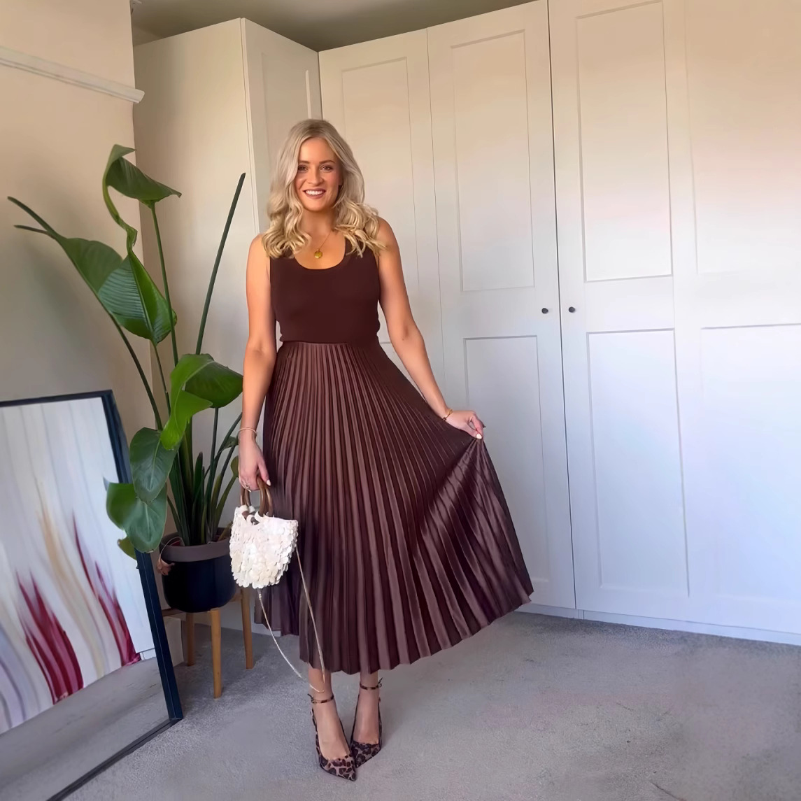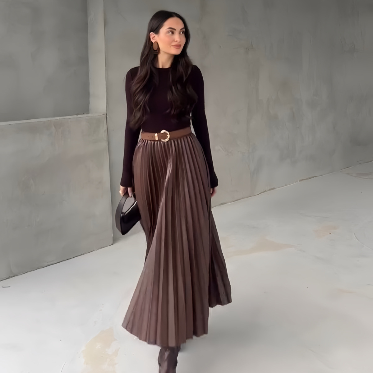 New Women's Clothing Simouflide Stew Stew Stew Folding Skirt High Waist-Hanging Long Dress HZ1208