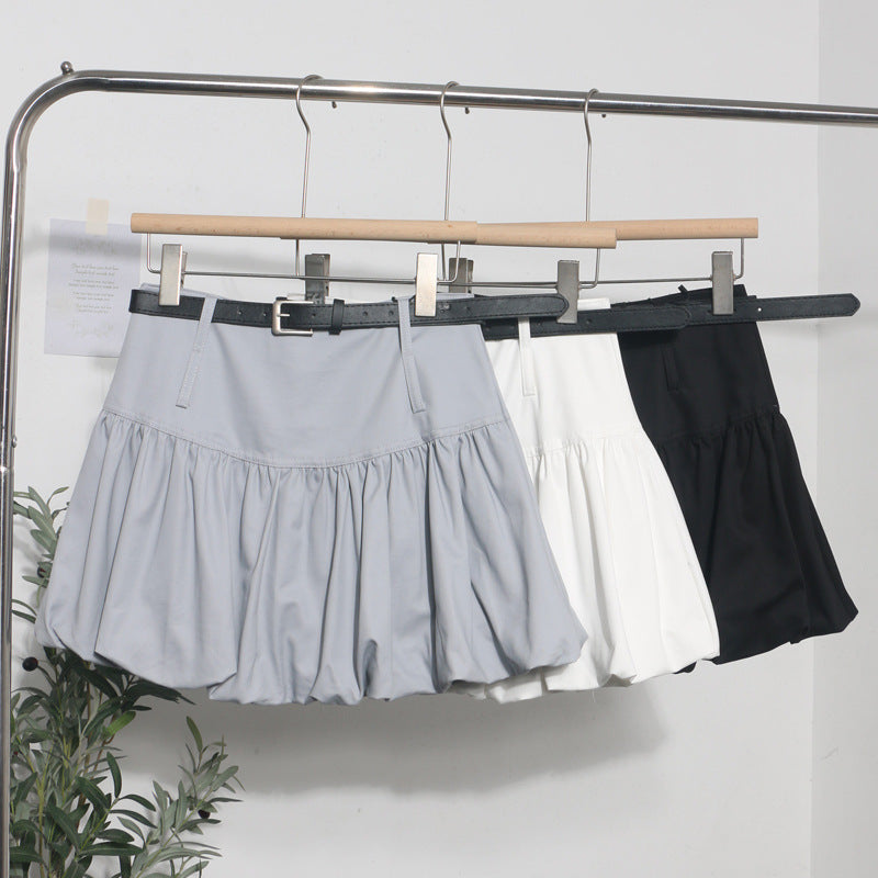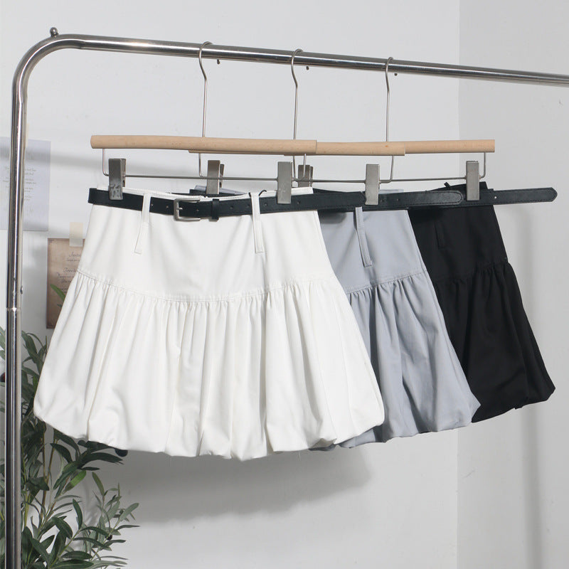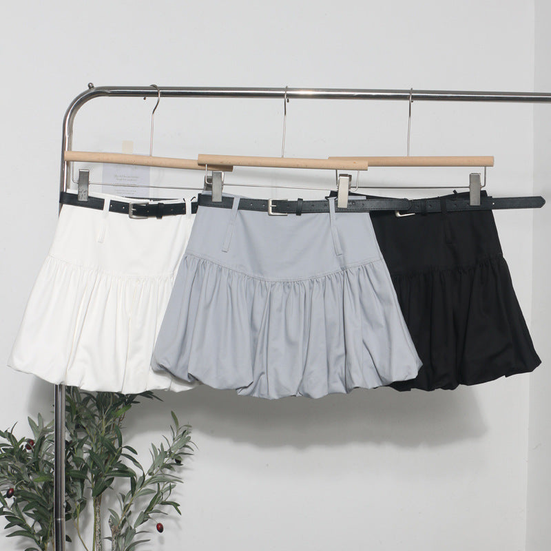 Real Shooting Flower Babe Half-Dress Woman 2025 Summer Korean Version Of High-Waisted Pony Skirt Casual A Short Skirt With Belt 8328 HZ1208