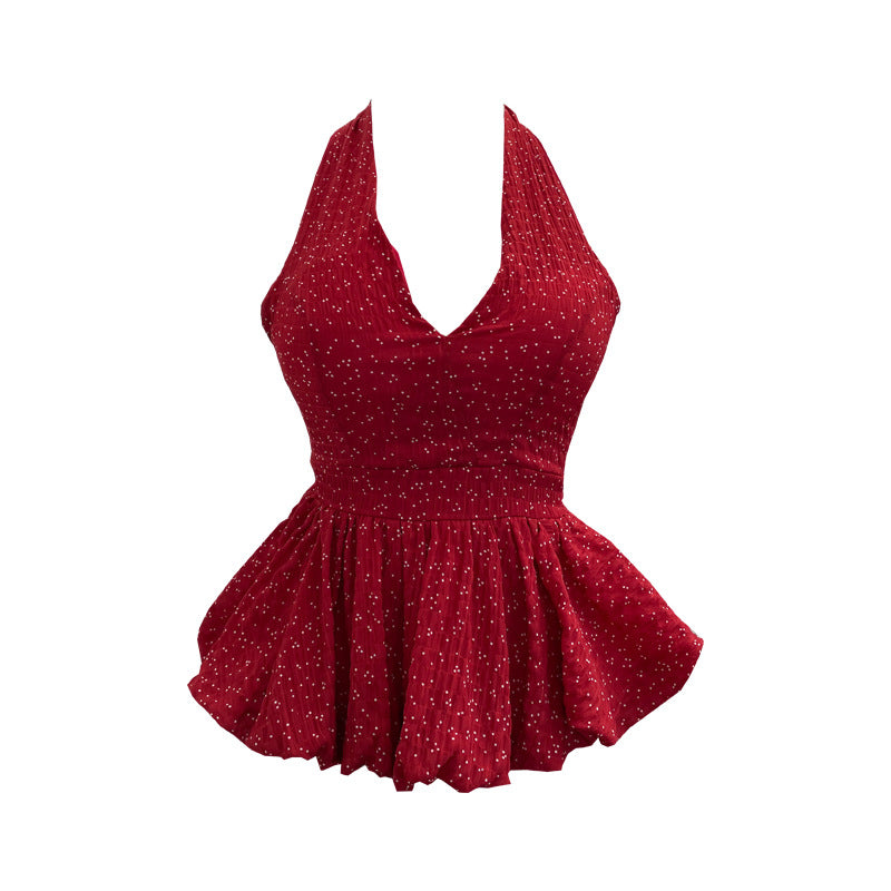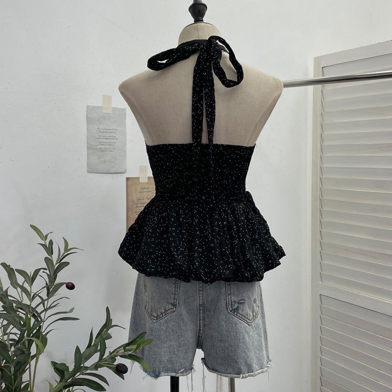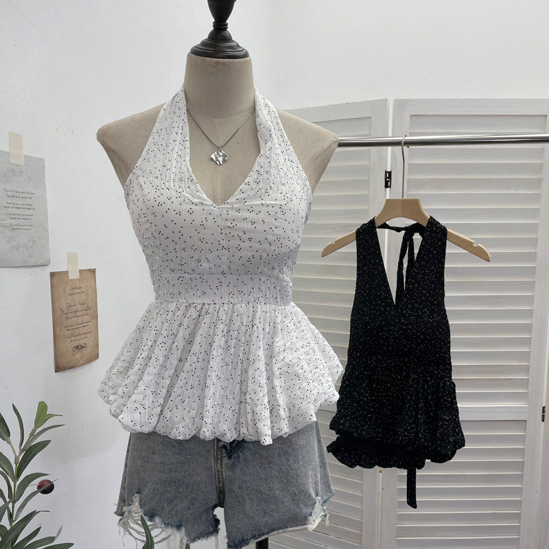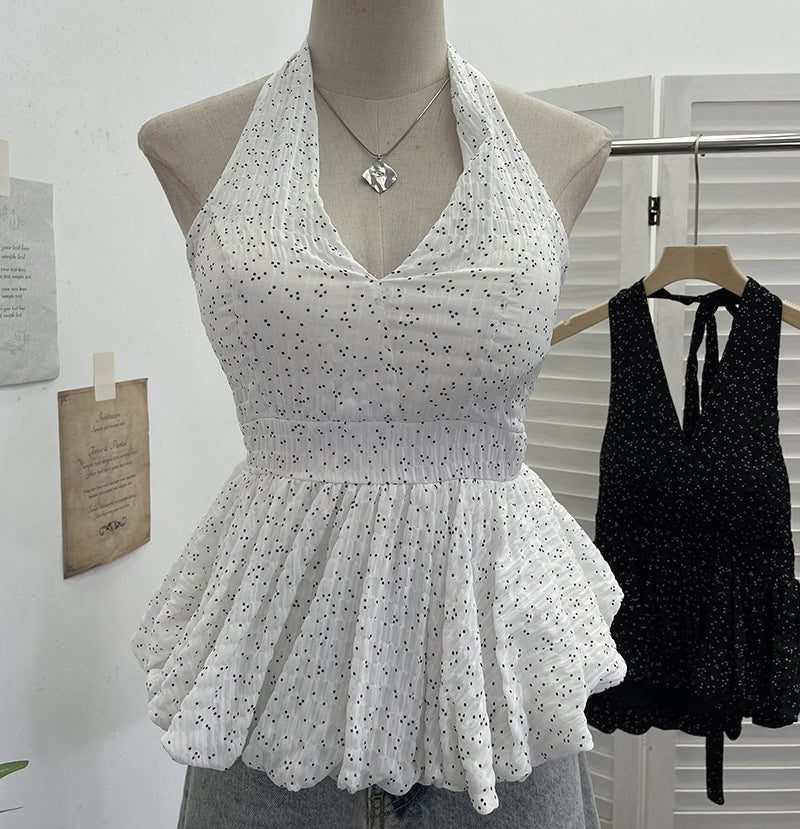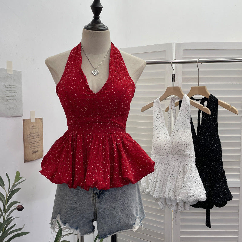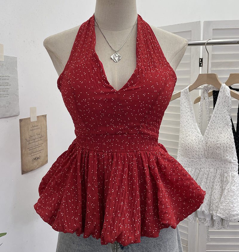 Real Shooting Wave Point Hanging Neck Sling Vest Bare Back Bow Skirt Swollen Belly Thin Sleeveless Top 9260 HZ1208