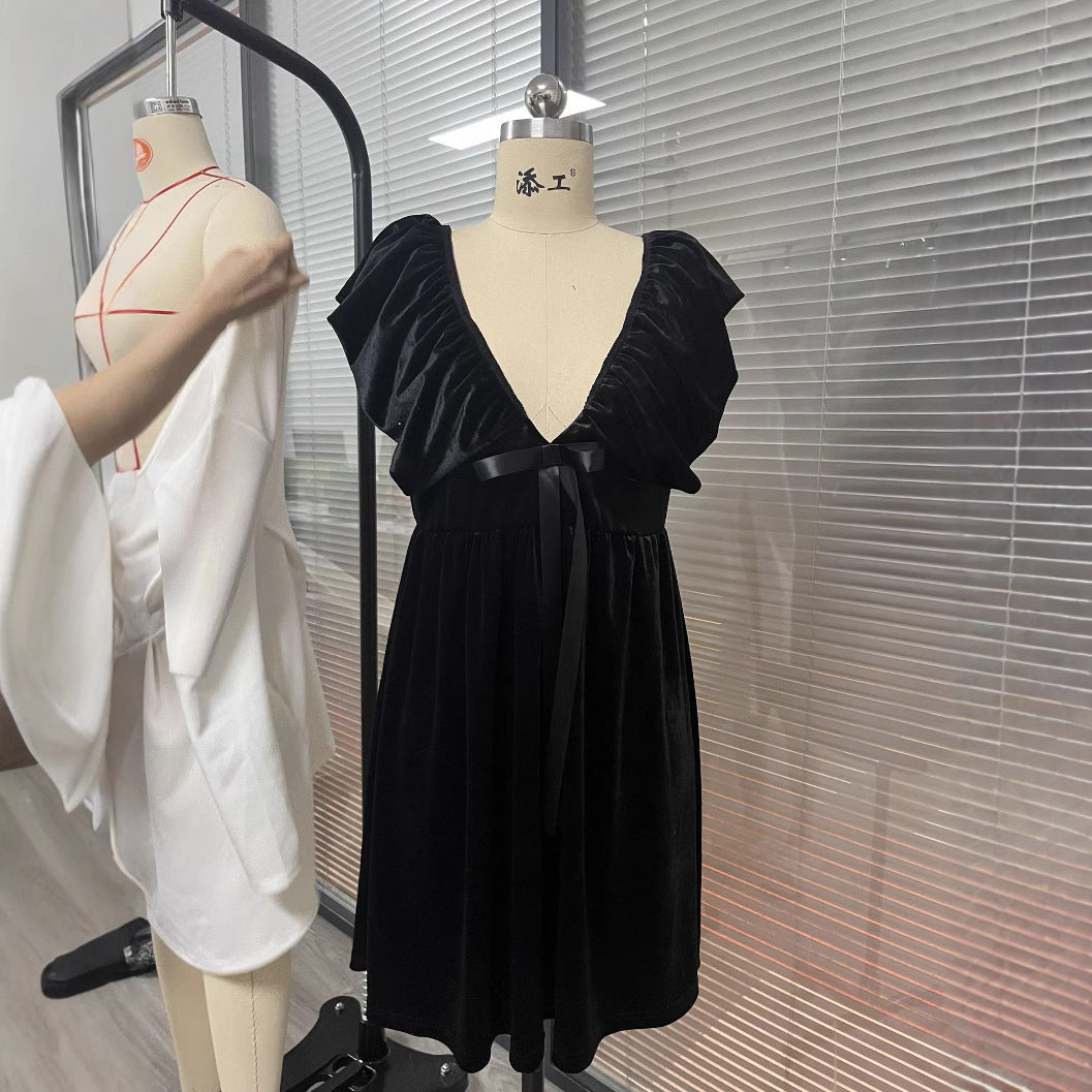 Sexy Women's New Deep V Strap Belts Solid-Colored Miniskirt HZ1208