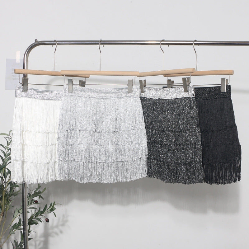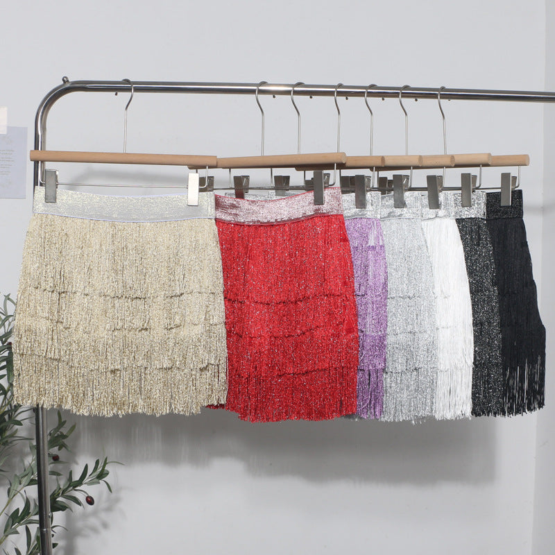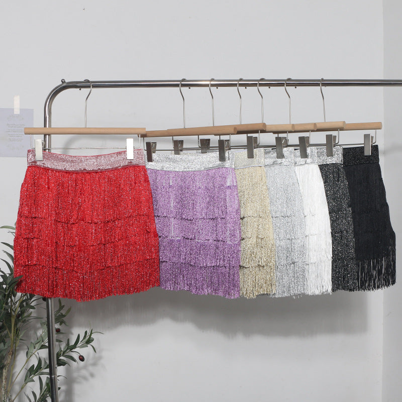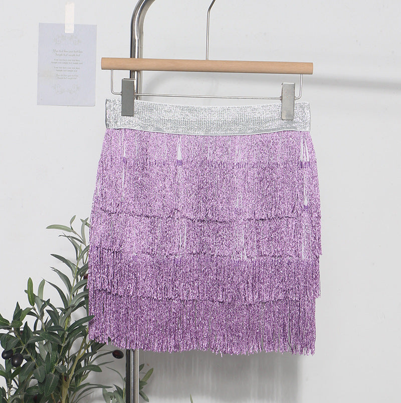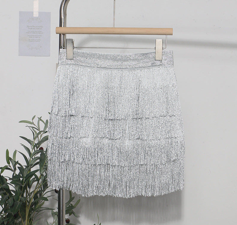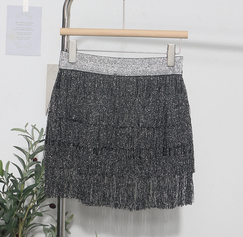 Shiny Tassel Dress Girl Autumn Design Small Babes Dance Irregular A Short Skirt 9039 HZ1208