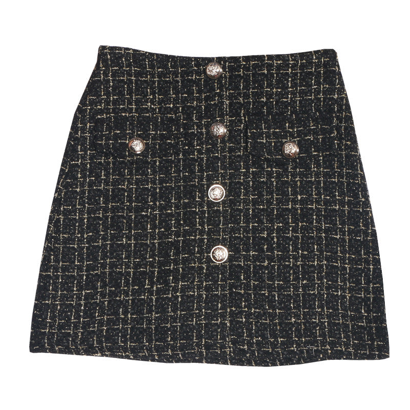 Small Fragrant A-Dress Dress Girl 2025 Autumn And Winter Silver Silk High-Waisted Lattice In Super Fire Bag Hip Skirt 8891 HZ1208