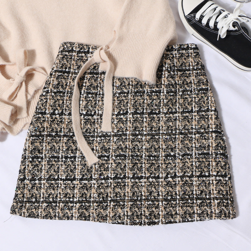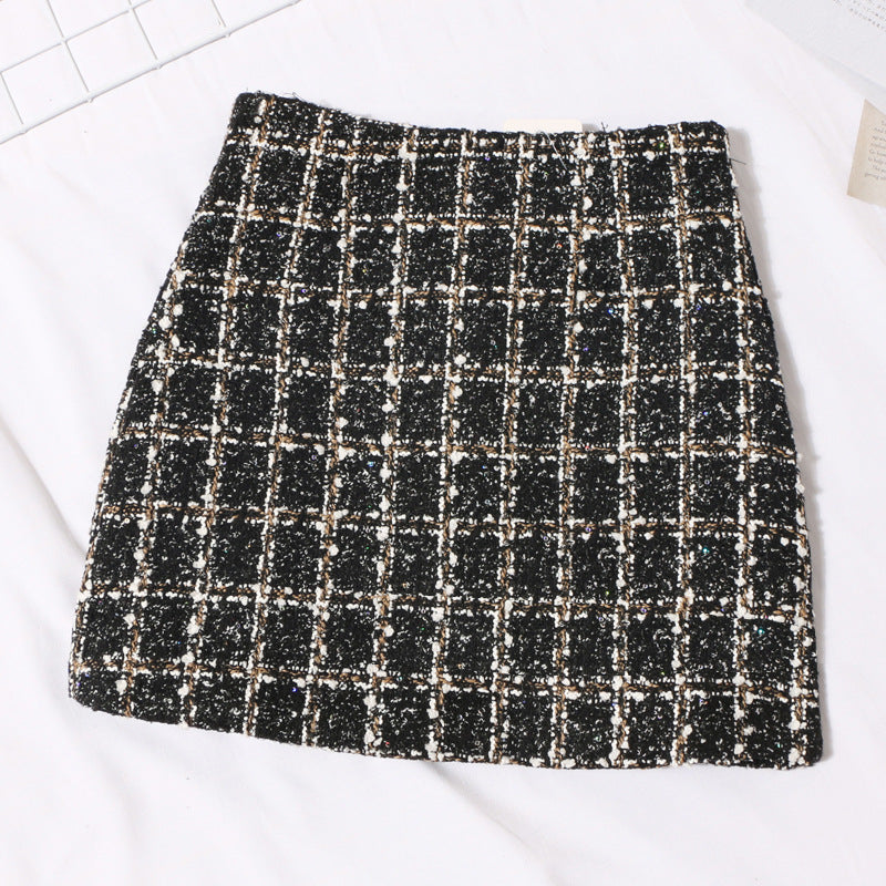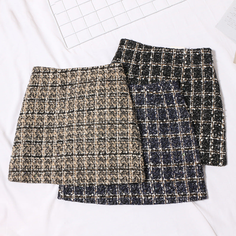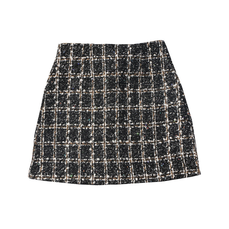 Small Scented Coarse Flowers, Lattice Half-Dress Woman 2025 Autumn And Winter New High-Waisted Thin Ass A-Word Skirt 8920 HZ1208
