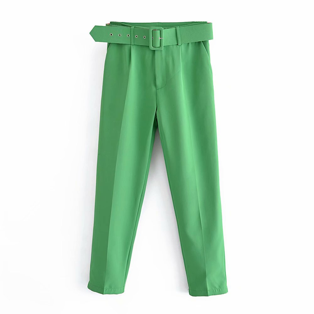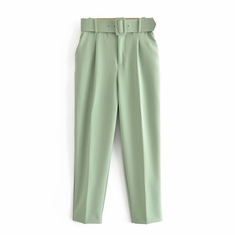 Spring 2025 New ñÞÖå Multi-Colored Harun Pants Casual Solid-Colored Small-Footed Women's Trousers Belt HZ1208