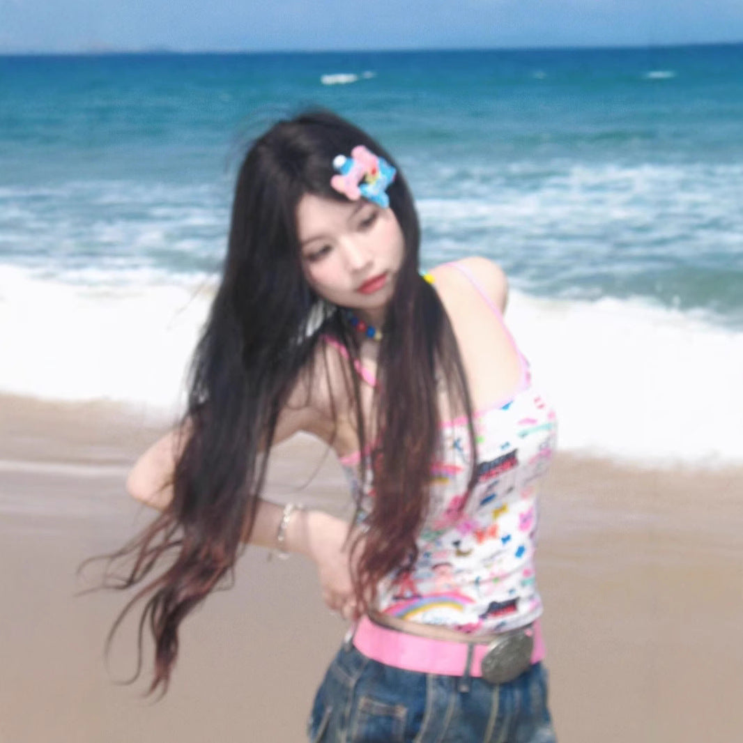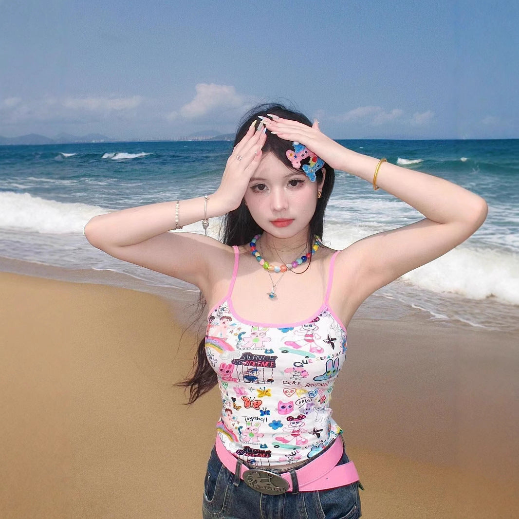 Summer Dopamine Wearing Sweet Hottie Small Coat Sling Design Small Love Cute Little Vest Girl Wear HZ1208