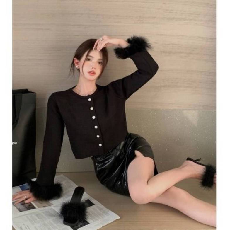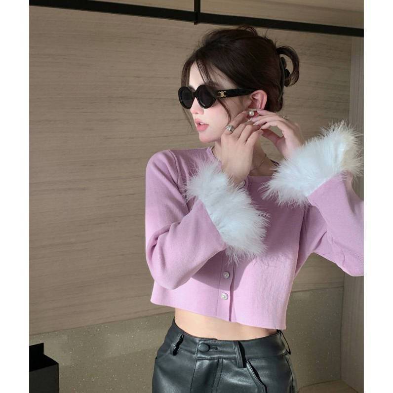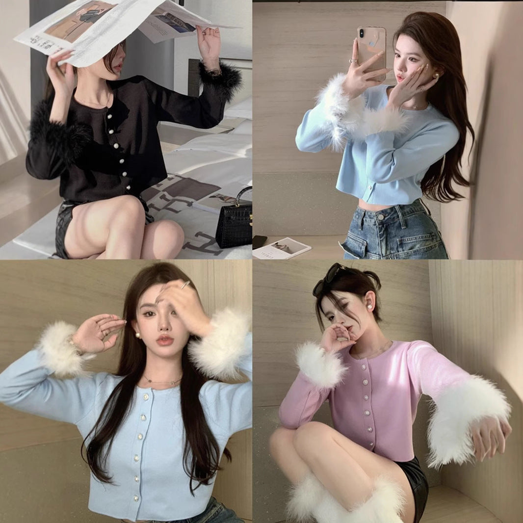 Thai Short Autumn Dress Women Autumn Small Design Feeling Long-Sleeved Fur Coat Gentle Wind 2025 Cardigan Small Coat HZ1208