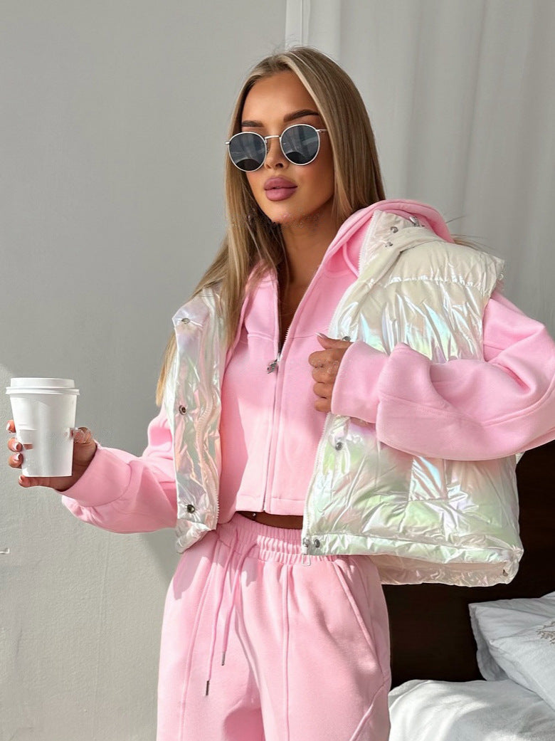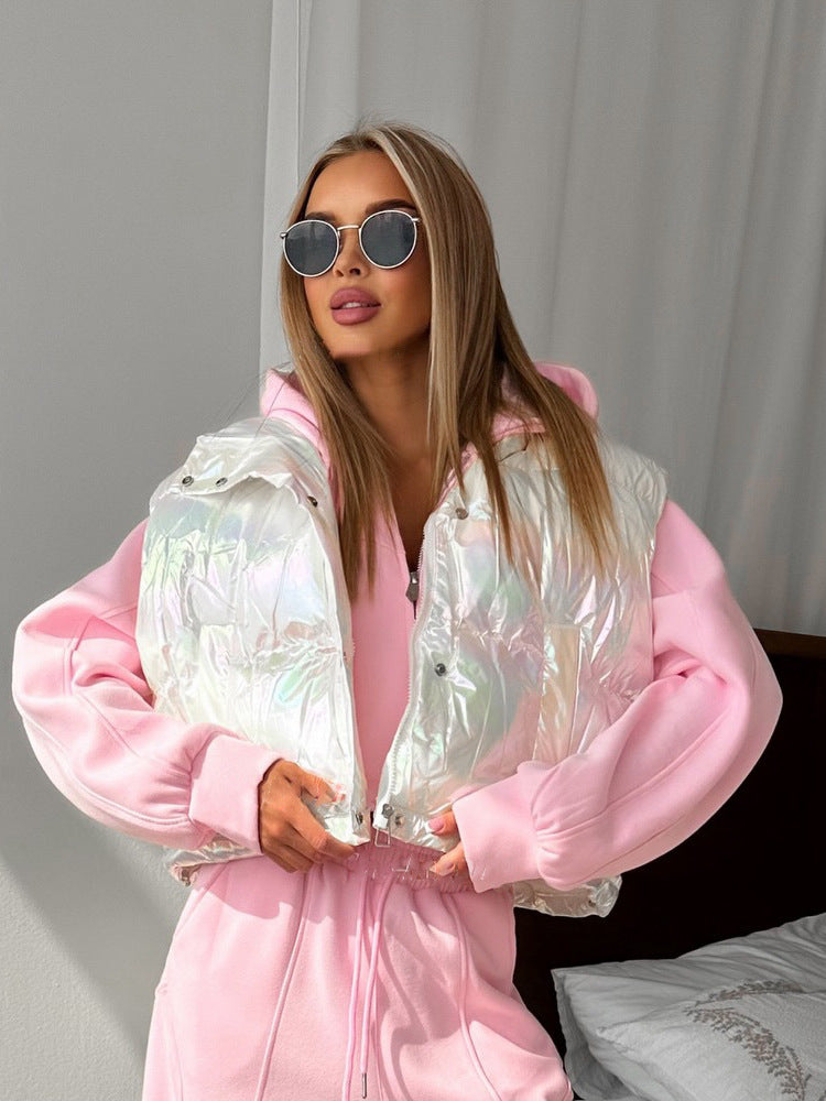 Trend-Duck Cotton Hooded Jacket Women's Autumn And Winter Warm Version Of The Handsome Broad Sleeveless Hooded Top HZ1208
