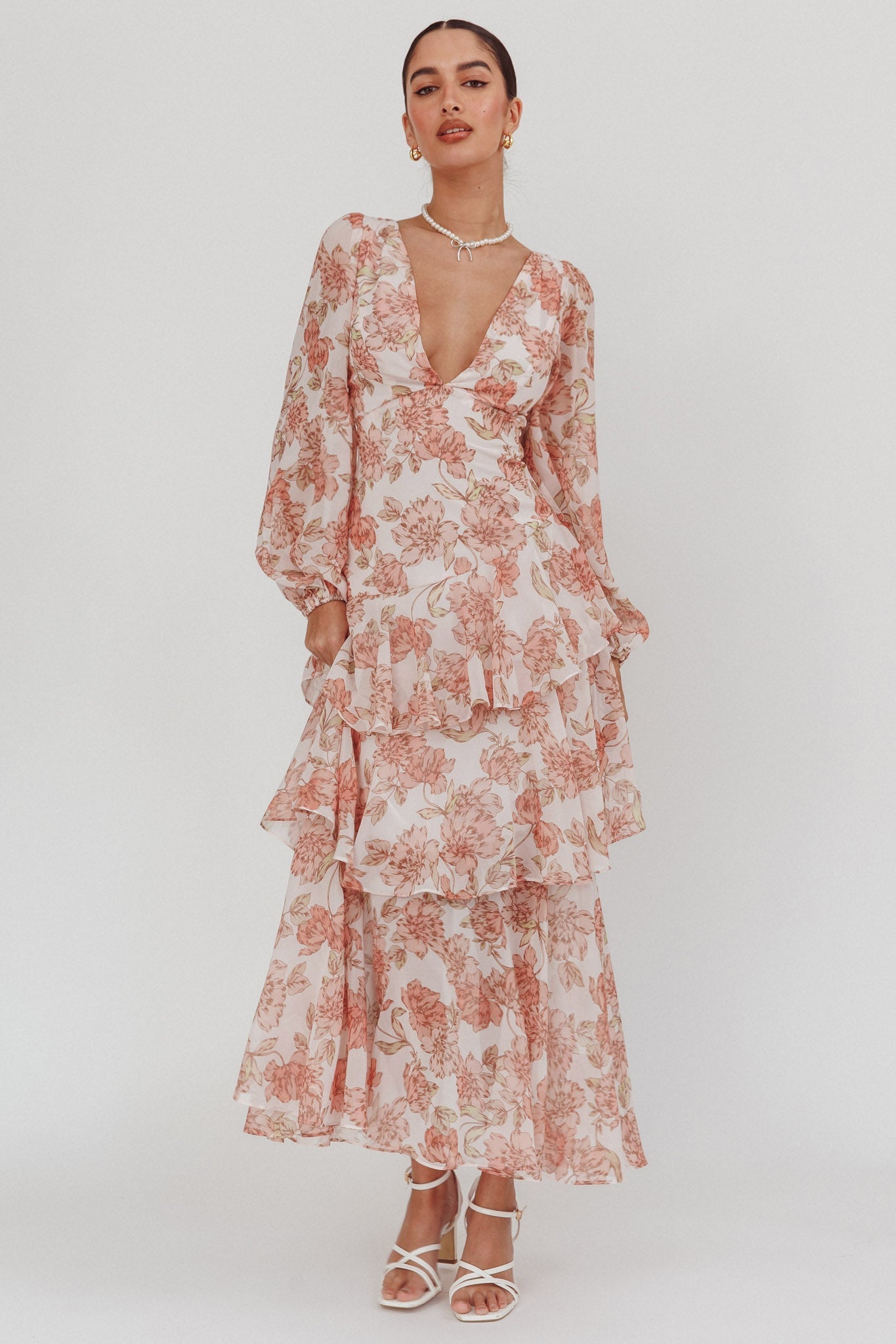 Jaws will drop when you float by in our gorgeous Veda dress. With its pretty, tiered ruffles and long puff sleeves, it's fit for a princess. Perfect for a special celebration teamed with heels and a tote for a dreamy look.