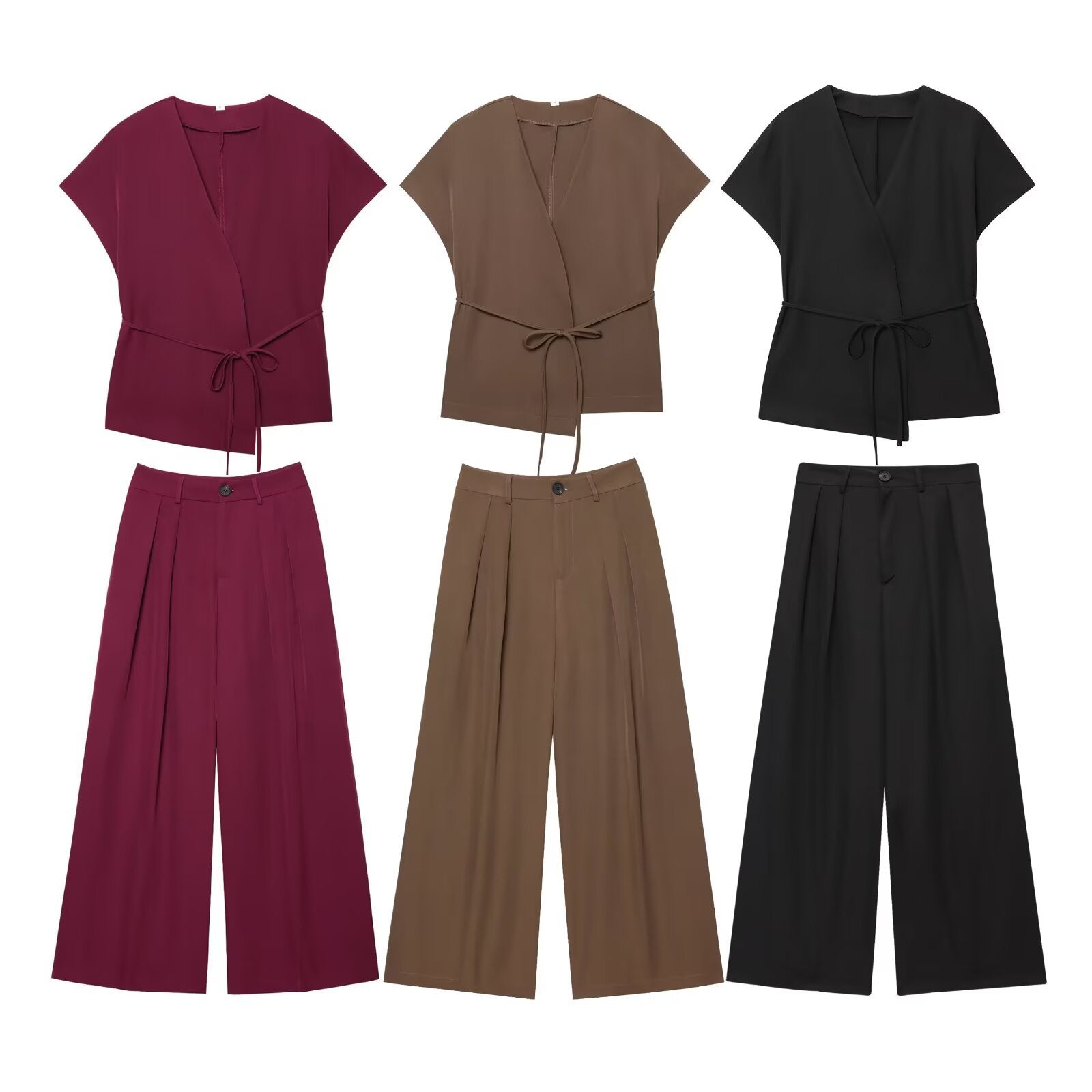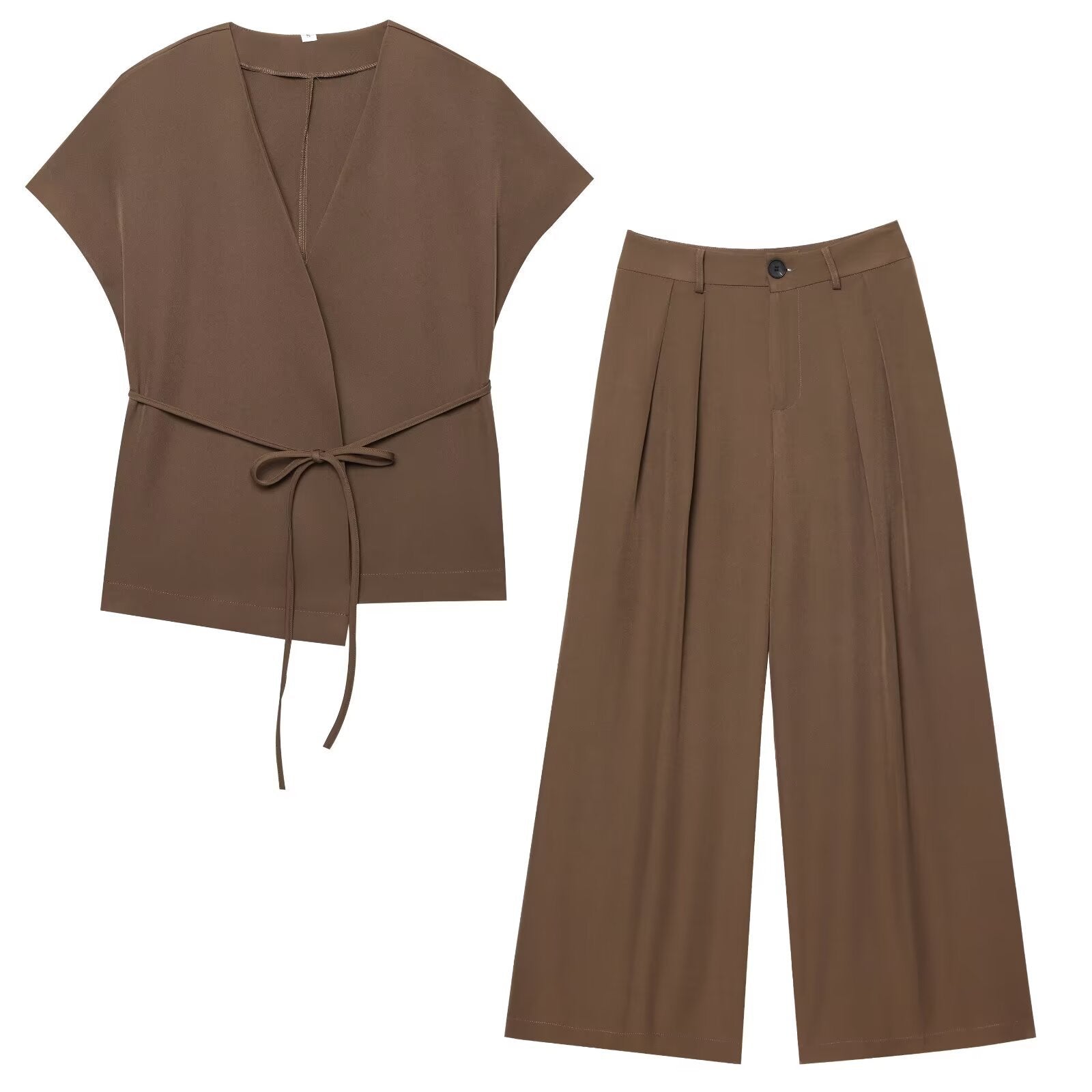 Z Women's 2025 Summer New Fashion Retro Waist Design Cardigan Top Broad Leg Trousers Set HZ1208
