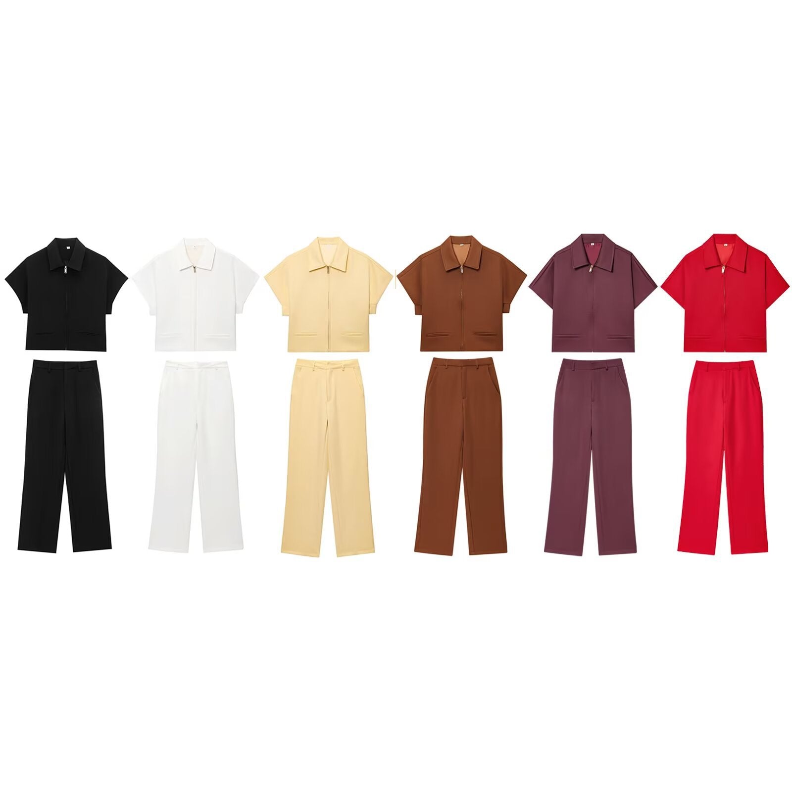 Z2025 Spring New Women's Collar Short-Sleeved Short Coat Straight Trousers 8491053 8491054 HZ1208